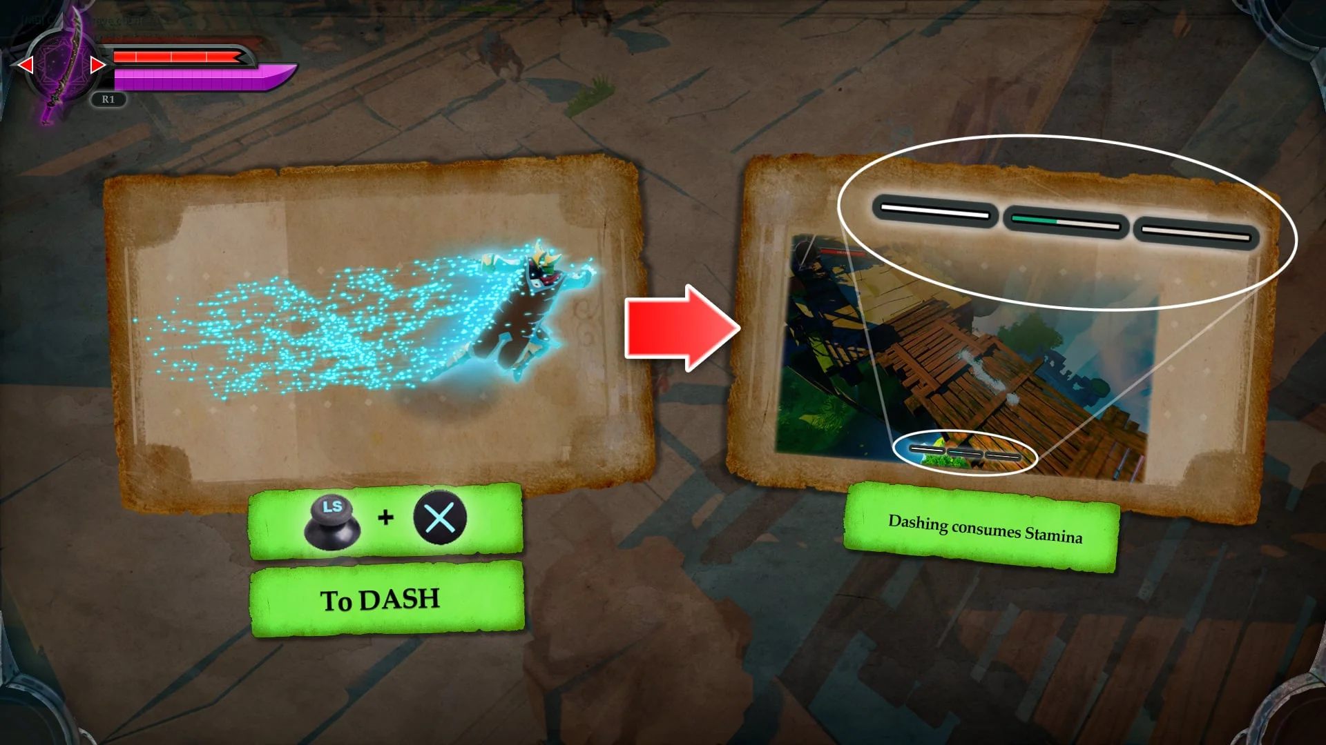 In this First Look we have preemptively unlocked the Dash. Normally, this ability is unlocked by spending points in the skill tree. To use the Dash, hold X and tilt the Left Stick in the direction you want to go. Try Dashing through enemies!